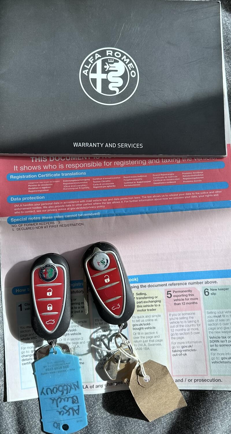 2016 Giulietta 1.6 120hp Reg - NX66 OUY 99,533 miles Second facelift edition Giulietta Diesel 2 keys Manual - 6 speed. 20/year VED Cheap insurance group - 17E ULEZ compliant - Euro 6 MOT until 12/2/2027 Very high spec: Front & Rear Parking Sensors Front & Rear Fog Lights Auto headlights Auto wipers Cruise control 6.5" UConnect system with Bluetooth and navigation. Armrest Auto Dual Zone AC 3 driving modes - DNA system - Dynamic, Natural, All Weather. Red interior - leather seats, matching door cards, dash trim and armrest. Heated front seats, electric lumbar support adjustment. Etna black - overall good body work but small damage to rear passenger arch and boot lid paintwork fading. Sequential smoked side indicators (OEM included). Alfa Romeo logo front door flood lights (OEM included). Full service history. New 12 months' MOT, just had a fresh full service. Very clean MOT history. GSR induction kit - adds a nice intake sound. (Original airbox included) Aftermarket GMP Italia Drake 18" alloys, Conti PremiumContact7 all round with good tread. Clutch and flywheel changed 17k miles ago. Cambelt done 25k miles ago. Done by Autolusso Ferndown under my ownership. Plenty of other jobs done too. New front lower arms and alignment. New rear springs . Discs and pads done all round about 12k miles ago with fluid change. Lots of paperwork with her. She's been a brilliant car during my 3 year ownership and well looked after, but needs a new home as we've welcomed a 2.0 Giulietta to the family. Alongside my Brera, I think 3 Alfas is a bit much for just me. The subtle modifications build on the Italian flair put into the design and have actually reduced my annual insurance when added to the policy, so likely nothing to worry about for potential new owners (even if a new driver as I was). Thanks for looking. |